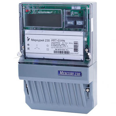 Счетчик 3ф 4т Меркурий 230 ART-03 СLN 5-7,5А 380В шкафной активная/реактивная