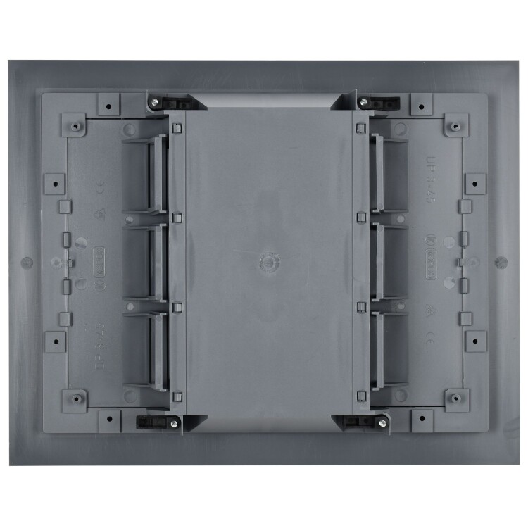 Лючок напольный ONFLOOR 12. Предназначен для организации рабочих мест в офисных или административных помещениях. В лючок можно установить 12 модулей (6 постов 45х45 мм / 12 модулей 45х22,5). Монтаж осуществляется в две рамки на 6 модулей каждая. Возможна установка лючка в фальшпол толщиной от 10 до 40 мм, необходимое монтажное отверстие для установки лючка 218х288 мм, либо в бетонный пол с обязательным использованием коробки напольной, в зависимости от толщины бетонного слоя: 57-75 мм: KNU-12-PA-9011; 80-95 мм: KNU-80-16-PA-9011 (рама лючка крепится на коробке напольной с помощью винтов диаметром 3,9x13 мм, которые поставляются в комплекте). Крышка лючка имеет небольшое углубление, усиленное стальным листом, для монтажа напольного покрытия с максимальной толщиной 7 мм (рекомендуемые напольные покрытия - ковер или ламинат). Крышка содержит 2 откидных вывода с мягким материалом, которые позволяют организовать вывод кабелей из лючка. Степень защиты IP30 - коробка не предназначена для влажной уборки. Конструкция лючков рассчитана на максимальную нагрузку 1500Н. Комплект поставки: Лючок напольный ONFLOOR 12 - 1 шт., рамка на 6 модулей для вертикальной установки - 2 шт., трафарет для финишного покрытия - 1 шт., комплект крепежа - 1 компл. Коробки для установки лючка в бетонный пол приобретаются отдельно. Цвет: тeмно-серый RAL 7012.