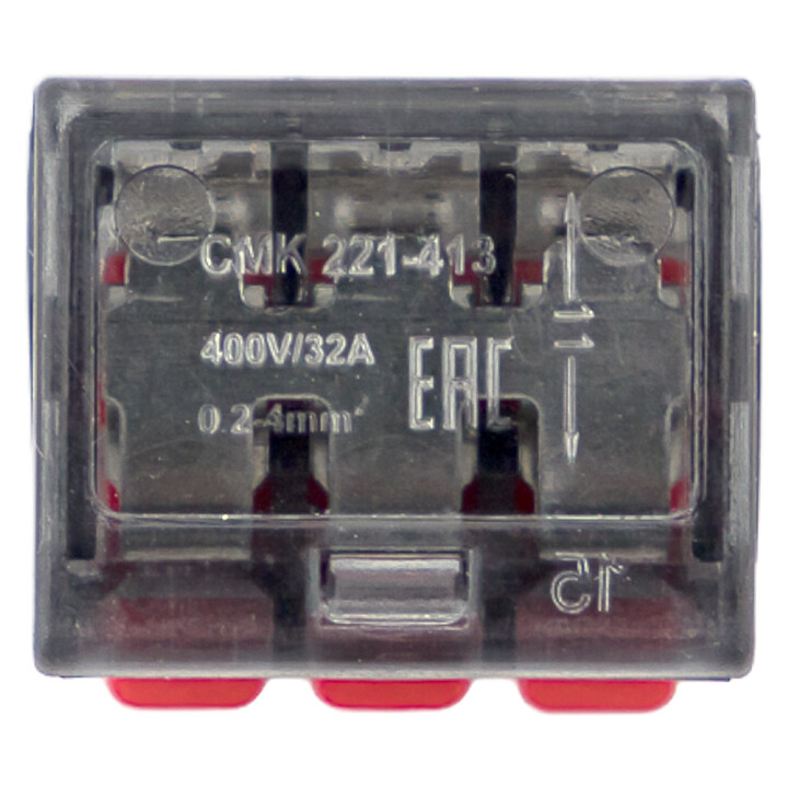 Клемма 3*4,0мм2 с рычажком прозрачный/красный EKF СМК 221-413 20шт