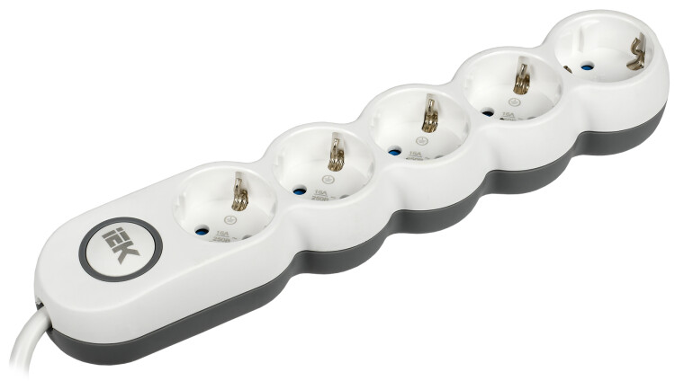 Удлинитель трехместный У03К IEK WYP10-16-03-05-ZK-N (ПВС 3 х 1,0 кв.мм, выключатель со световой индикацией), белый, 5 м