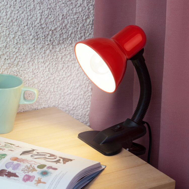 Настольный светильник-прищепка ЭРА N-212-E27-40W-R может использоваться с лампой накаливания, компактной люминесцентной лампой (КЛЛ) или светодиодной (LED) лампой. У светильника прочная удобная прищепка и металлический плафон. Наклон и поворот плафона в любом направлении для удобного направления света. Поставляется в "мягкой упаковке" - индивидуальном ПЭ пакете.