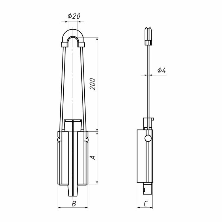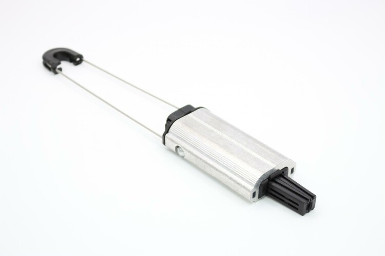 Предназначен для крепления изолированной нулевой несущей жилы (СИП-2) на анкерных и анкерно-угловых опорах. Зажим обеспечивает надежную фиксацию и удержание проводов путём натяжения при монтаже воздушных линий электропередач. Крепится на опорах с помощью крюков и кронштейнов. Установка зажима производится благодаря наличию тросика. Корпус выполнен из алюминиевого сплава методом экструзии, что обеспечивает высокую надежность зажима и его устойчивость к механическим воздействиям. Саморегулирующиеся клинья из полимера, устойчивого к ультрафиолетовому излучению, выполнены с особым рельефом, надежно фиксирующим проводник, не повреждая изоляцию. В месте установки зажима защитная изоляция с жилы не снимается, тем самым, герметичность провода не нарушается. Тросик из нержавеющей стали, с шаровыми креплениями на обоих концах для удобства монтажа и надежной фиксации, имеет специальную накладку (коуш), защищающую его от износа при креплении на кронштейне (крюке). Установка зажима производится без инструментов. Обладает высокой прочностью, устойчивостью к ультрафиолету, коррозии, воздействию экстремальных температур, влажности и другим погодно-климатическим факторам.