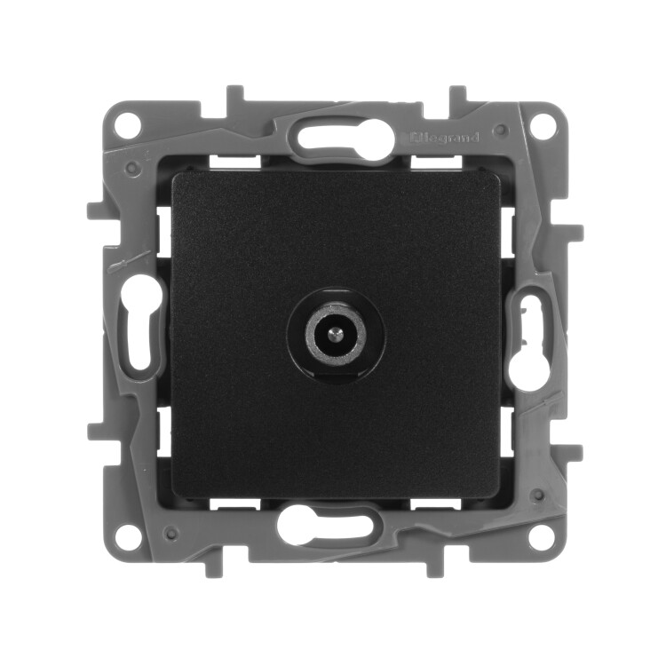 Оконечная ТВ-розетка Legrand Etika, цвет антрацит, является составляющей частью схемы последовательного подключения "шлейф" (от одного к другому) ТВ-приёмников. Устанавливается в конце линии, применяется совместно с проходными ТВ-розетками. Не применяется в качестве одиночной розетки для одного телевизора.