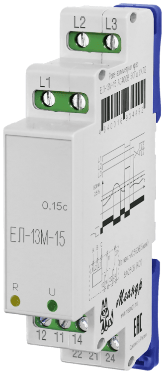 Реле контроля трехфазного линейного напряжения "Меандр" ЕЛ-13М-15 AC400В УХЛ4