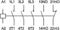 - При подаче номинального напряжения на катушку она втягивает сердечник и этим замыкает группу силовых и вспомогательных контактов.