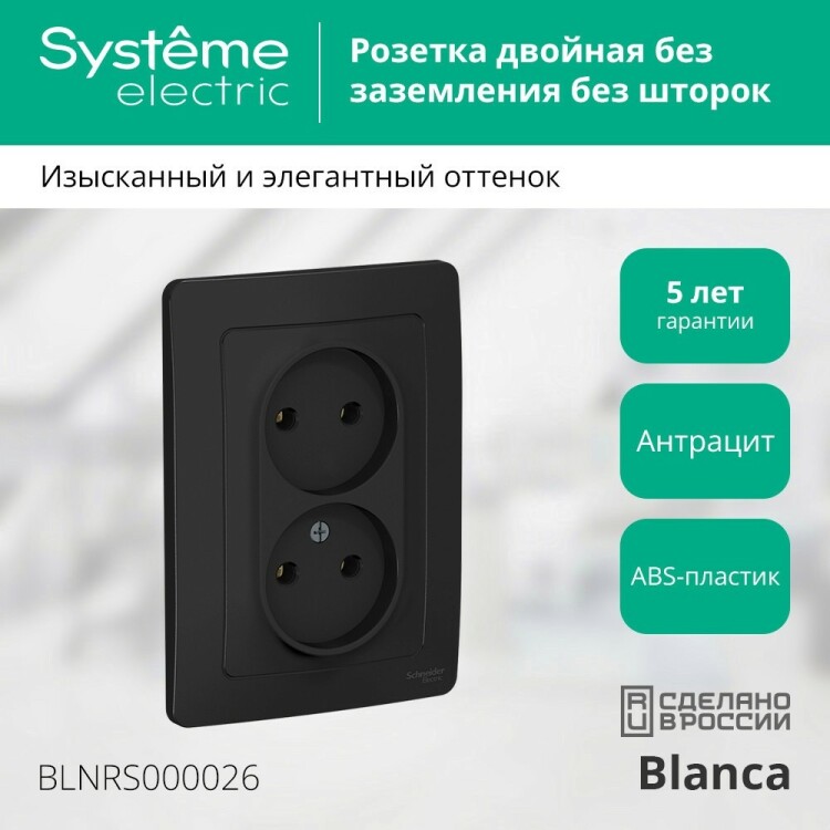 Розетка двухместная Schneider Electric BLNRS000026 Blanca (16 А) скрытой установки, антрацит