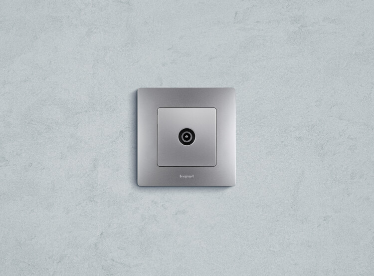 Проходная ТВ-розетка Legrand Etika, цвет алюминий, является составной частью схемы последовательного подключения "шлейф" (от одного к другому) ТВ-приёмников. Используется по длине линии. В конце «шлейфа» устанавливается оконечная розетка. Проходная розетка в качестве одиночной розетки не применяется.