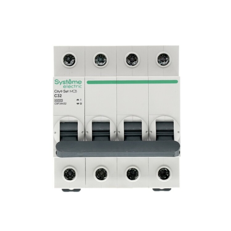 Автоматический выключатель серии City9 Set Systeme Electric, 4-полюсный, номинальный ток 32 А, характеристика С, Icn = 4.5 кА. Примен яется в электрических сетях напряжением 400 В. Предназначен для защиты от перегрузок и токов короткого замыкания. Оснащен механизмом «мгновенной коммутации». Ударопрочный корпус из специального пластика с 6 металлическими заклепками. Безопасные клеммы исключают попадание кабелей в заклеммное пространство (ранее Schneider Electric EZ9F34432).