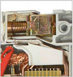 Защита от изменения заводских настроек механизма теплового расцепителя плексигласовой вставкой. |