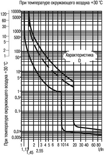 | Характеристика срабатывания от сверхтоков, тип | D |