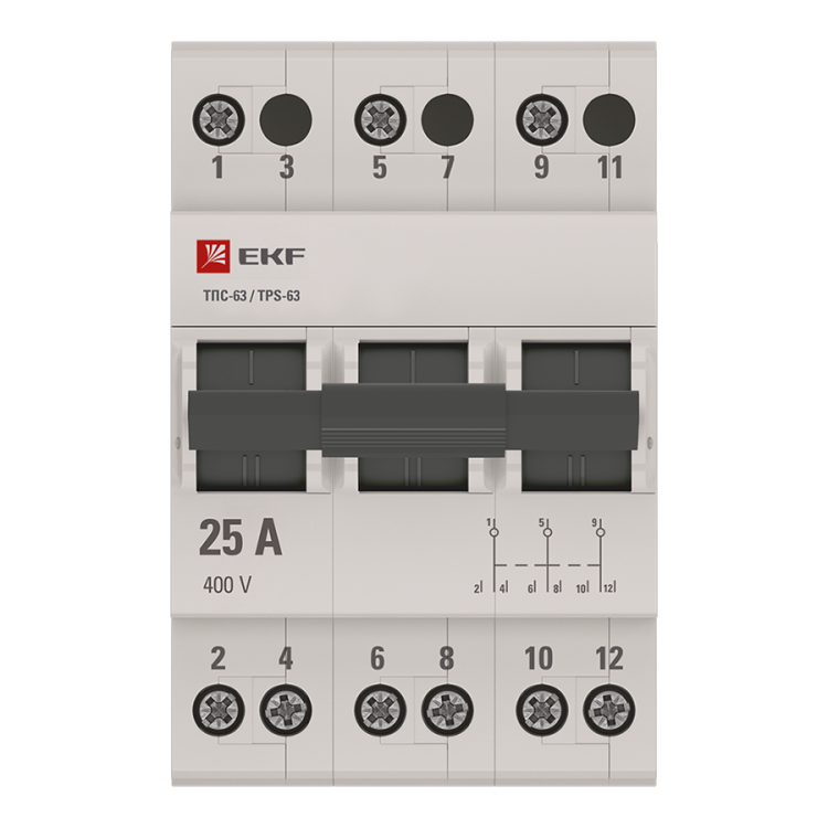 Трехпозиционные переключатели ТПС-63 EKF PROxima являются механическими коммутационными аппаратами и применяются для переключения нагрузки или питающей линии, проведения тока в нор-