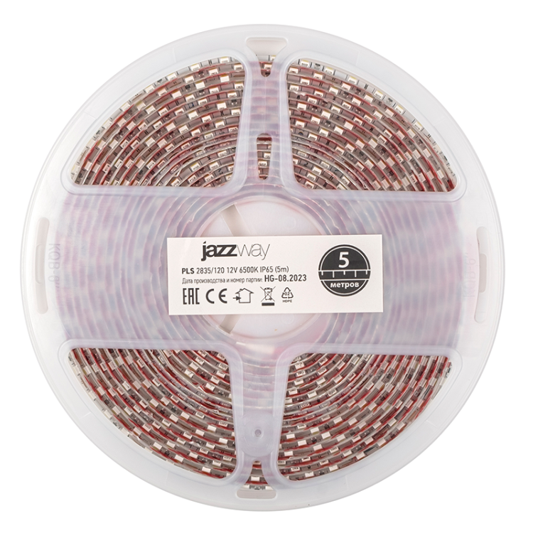 Лента свд 12В 12Вт/м 120свд/м 6500К 960лм/м 2835 IP65 Jazzway 5м
