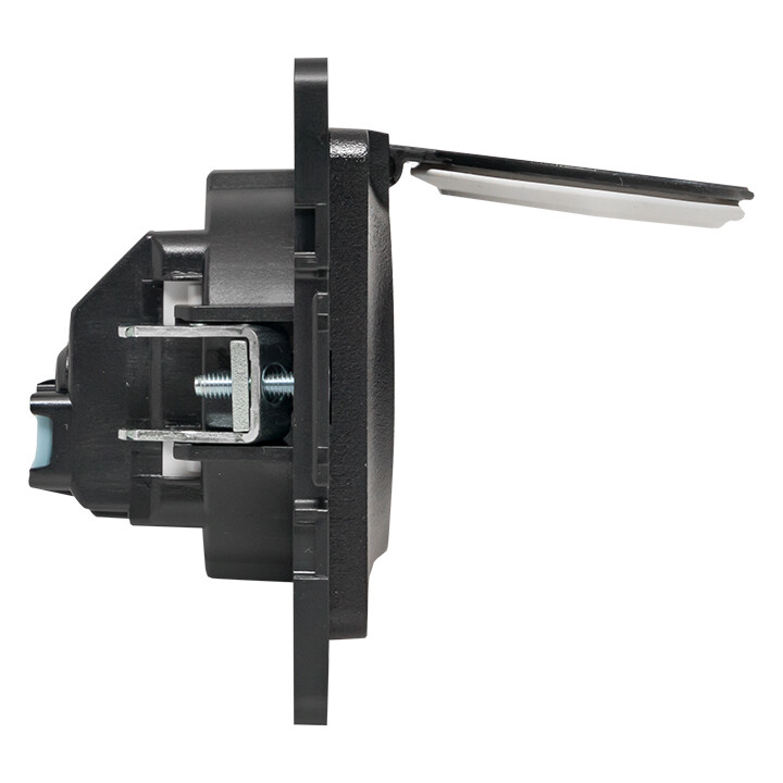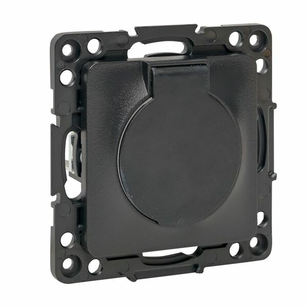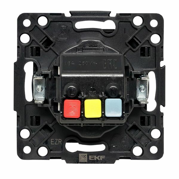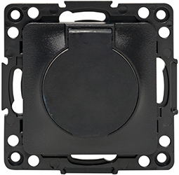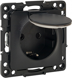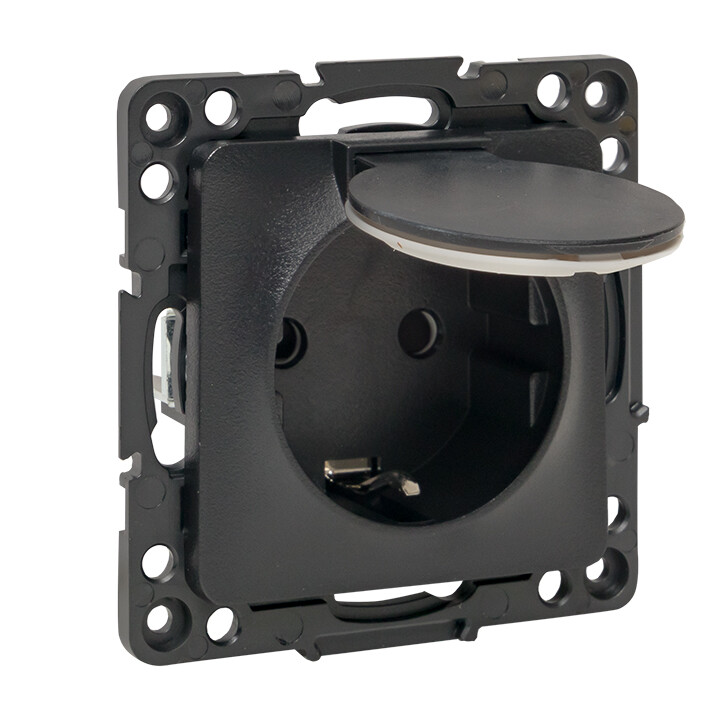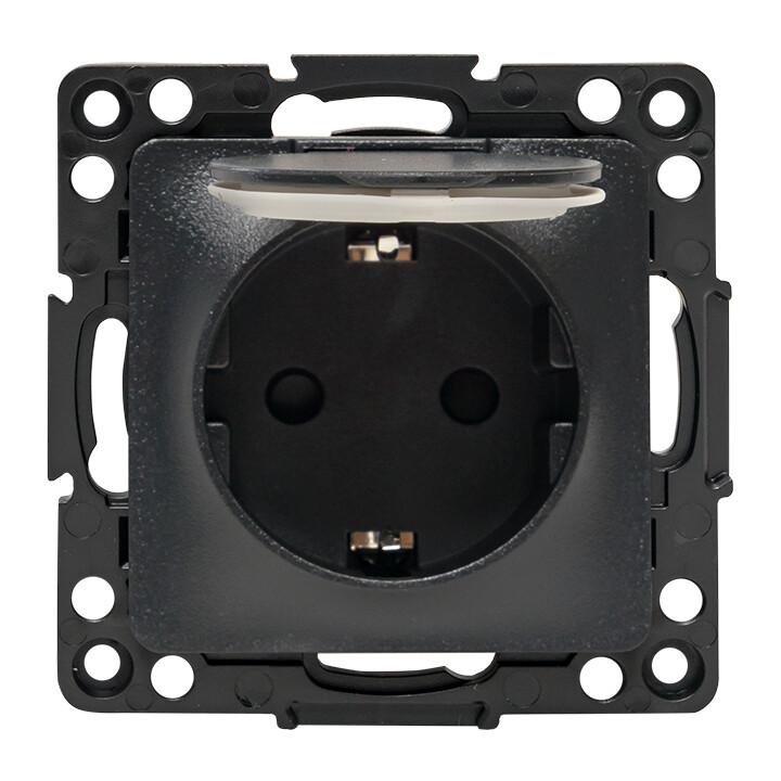 Розетка одноместная EKF EZR16-028-10-44 "Стокгольм" (16 А, IP44) скрытой установки, с заземлением и защитными шторками, с крышкой, черный