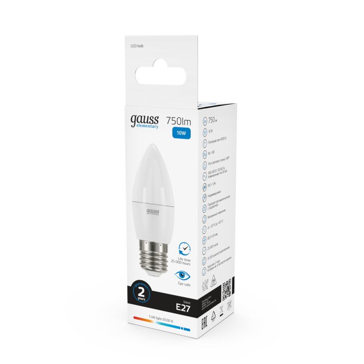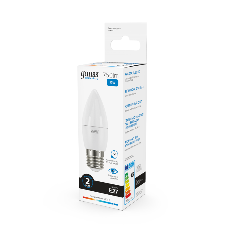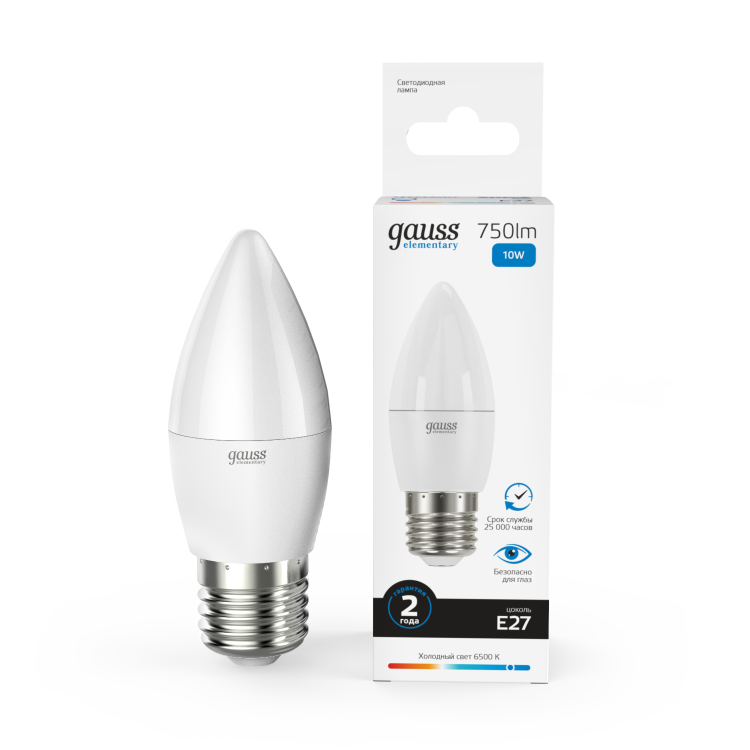Лампа свеча свд Е27 10Вт 6500К 750лм C37 матовая Gauss