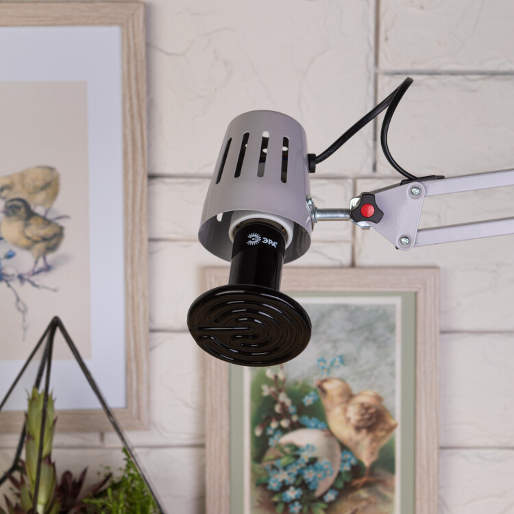 ИК-нагреватель ЭРА CeramiHeat в виде лампы с цоколем Е27 имеет широкую область применения: уход за домашними питомцами, выращивание животных на фермах, содержание ящериц, черепах и других рептилий. 10 000 часов службы. Мощность — 100 Вт.