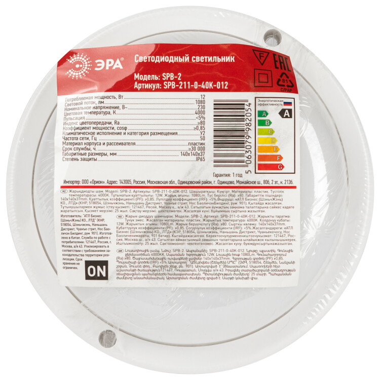 Светильник ДПП 12Вт 4000К 1080лм круг белый IP65 SPB-211 ЭРА