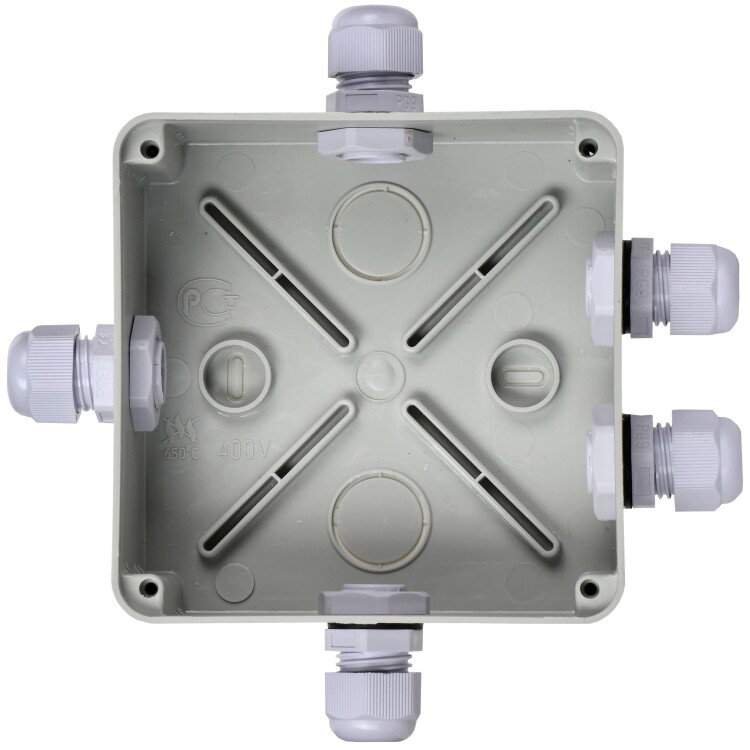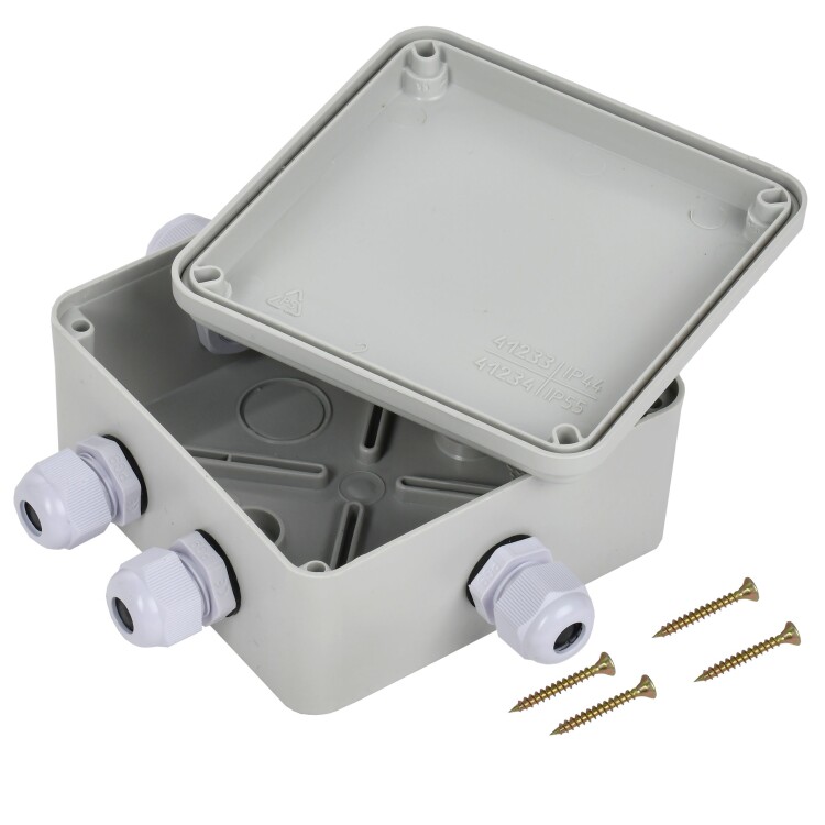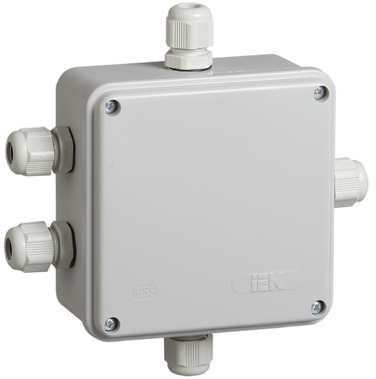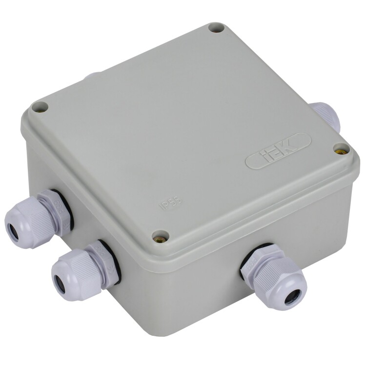Монтажные коробки для открытого монтажа предназначены для разветвления проводов и кабелей, также для скрытия и дополнительной защиты мест коммутации. Коробки для открытого монтажа используются как часть системы электрической канализации, состоящей из жестких и гофрированных труб. Некоторые типы коробок (степень защиты IP44, IP55, IP65) могут быть использованы на открытом воздухе, а также во влажных и пыльных помещениях. Материал изготовления: полистирол. Материал коробок является безгалогенным («HF» — halogen-free). Цвет: серый. Степень защиты: IP55. Кабельные вводы в комплекте: PG9 IP54 - 5шт. Размер: 100х100х50мм.