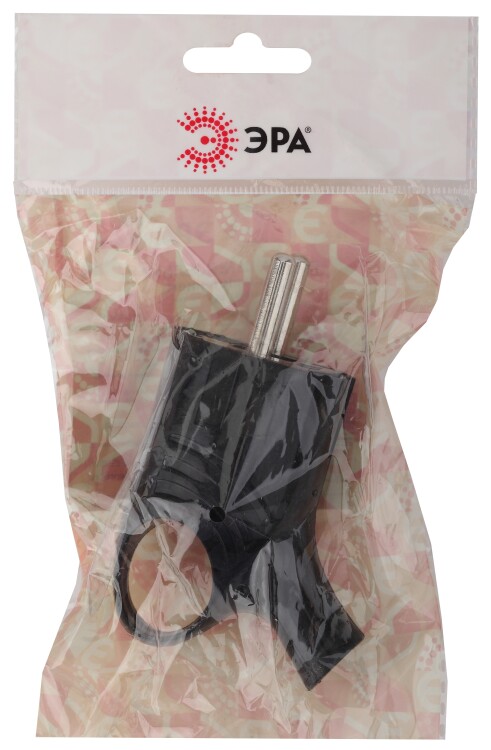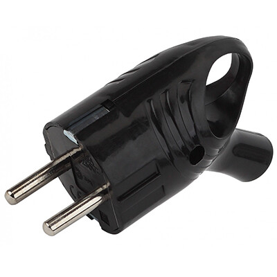 Вилка штепсельная угловая Vx4-B "Эра" (16 A, IP20) с заземлением, с кольцом, черный