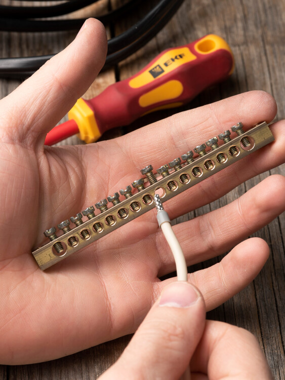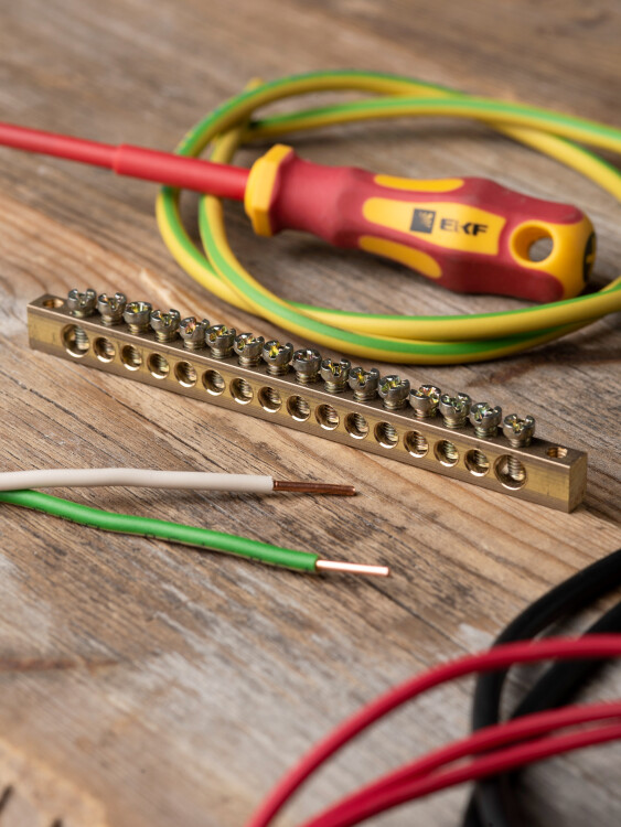Шины предназначены для присоединения нулевых проводников (шина N) и заземления (шина PE). Шины выполнены из латуни и никелированной латуни. Нулевая шина устанавливается на изоляторе.