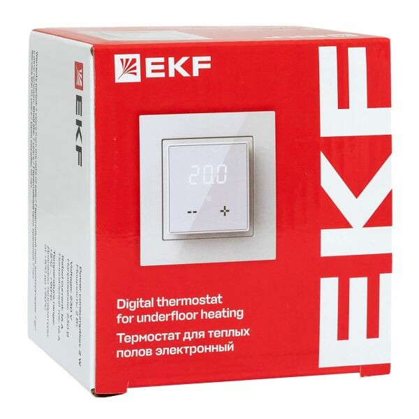 Термостат для теплых полов электронный EKF предназначен для автоматического управления кабельными системами электрического обогрева. Терморегулятор поддерживает комфортную температуру обогреваемой поверхности и обеспечивает рациональный расход электроэнергии. В комплект термостата входит выносной и встроенный датчик температуры воздуха. Цвет белый.