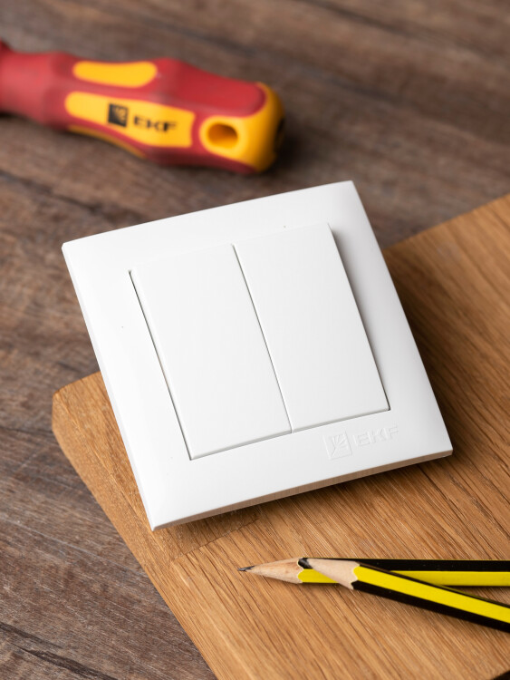 Выключатель двухклавишный EKF EWV10-023-10 "Валенсия" (10 А, IP20) скрытой установки, белый
