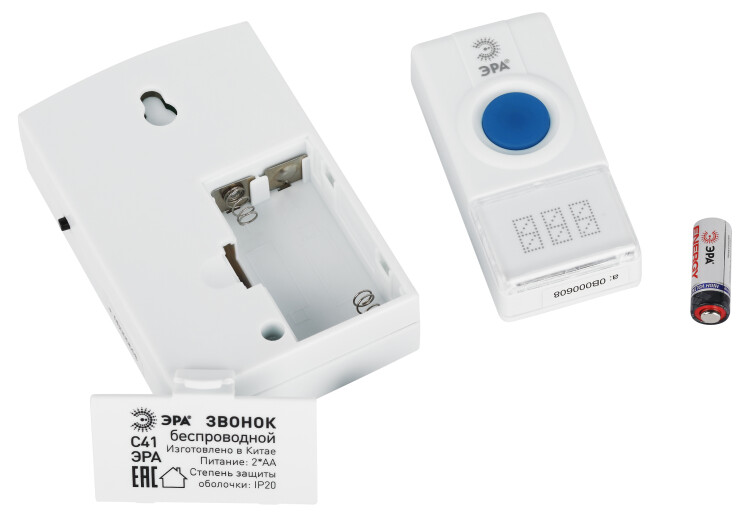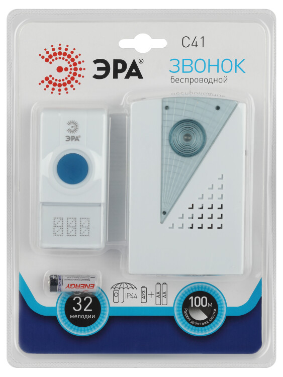 Беспроводной электрический дверной звонок с 32 мелодиями и влагозащищённой кнопкой, под которой предусмотрено пространство для указания номера квартиры. Прост в подключении. Отсутствие проводов позволяет использовать звонок с максимальным удобством. Динамик можно разместить в коридоре или взять с собой в комнату/на кухню если не хотите разбудить кого-то из домочадцев. Беспроводные звонки ЭРА хороши для дачи или загородного дома установите кнопку на дверной калитке, а динамик в помещении. Радиус действия - до 100 метров. Звонок работает от батареек: 1 шт А23 для кнопки (входит в комплект), 2 шт АА пальчиковые для динамика (в комплект не входят). При среднем использовании (до 20 звонков в день) исправно проработает без замены элементов питания не менее года.