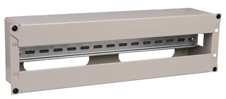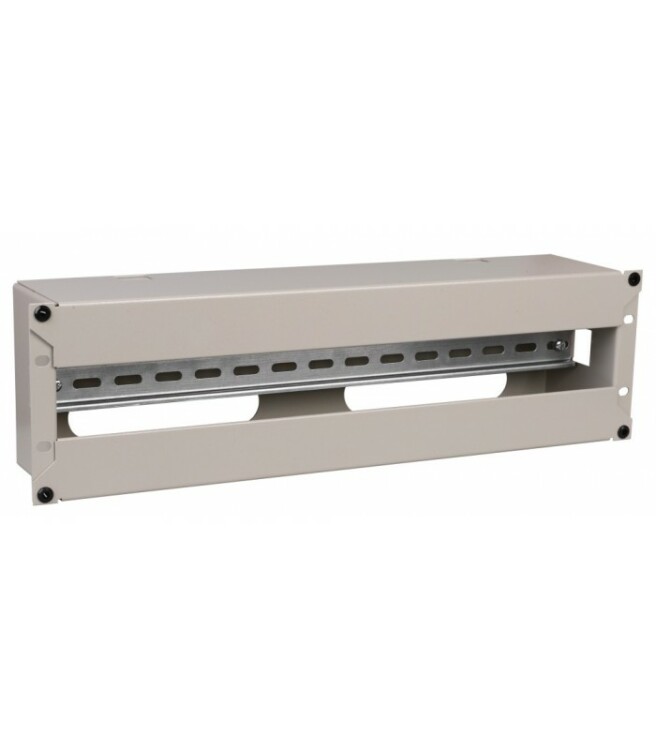 Электрораспределительная панель с DIN-рейкой используется для установки в 19 шкафах и стойках модульного оборудования и подведения к ней электрических кабелей с последующим распределением рабочего напряжения на потребителей.Панель состоит из корпуса, лицевой съемной крышки и DIN-рейки. На обратной стороне предусмотрены окна для ввода кабелей в панель. Электрораспределительная панель устанавливается на вертикальные монтажные профили с помощью крепежа винт-шайба-гайка. На корпусе предусмотрена возможность организации заземления изделия.