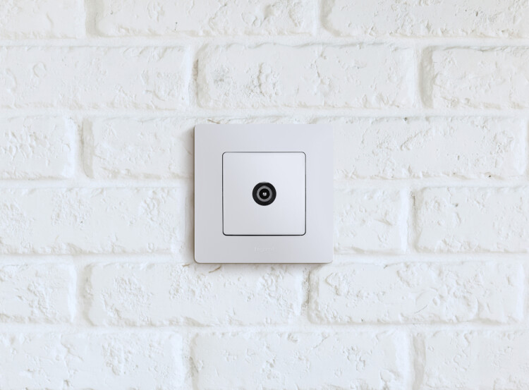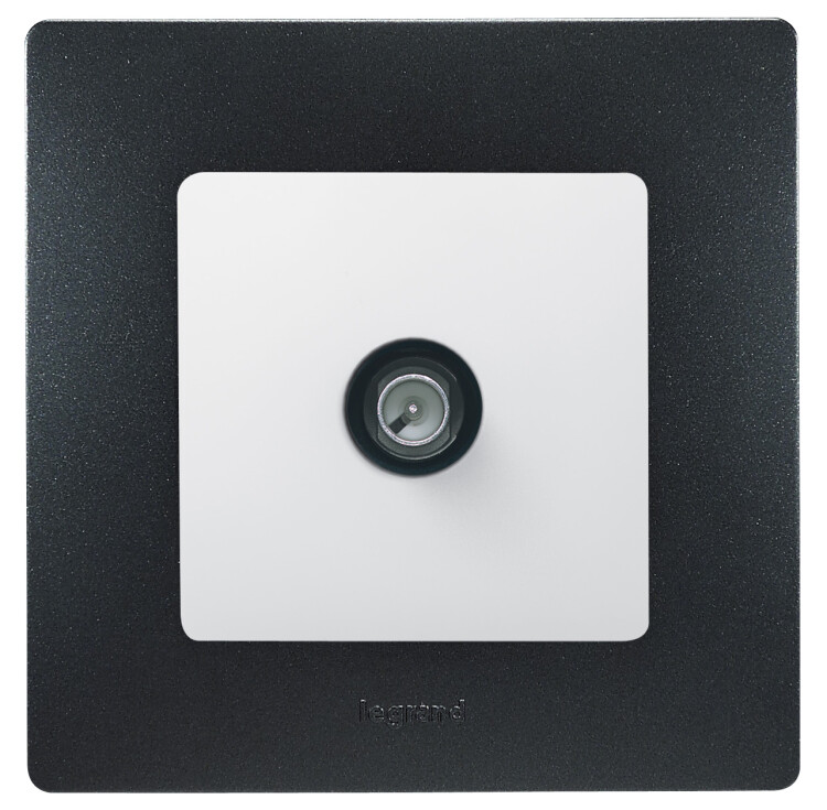 - Присоединение приходящего и отходящего коаксиального кабеля к розетке осуществляется удобным безвинтовым коннектором.