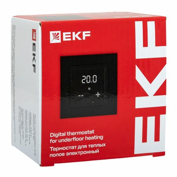 Термостат для теплых полов электронный EKF предназначен для автоматического управления кабельными системами электрического обогрева. Терморегулятор поддерживает комфортную температуру обогреваемой поверхности и обеспечивает рациональный расход электроэнергии. В комплект термостата входит выносной и встроенный датчик температуры воздуха. Цвет черный.