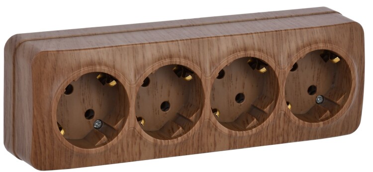 Розетка четырехместная IEK РС24-3-ХД Glory (16 А, IP20) открытой установки, с заземлением, дуб
