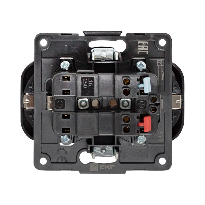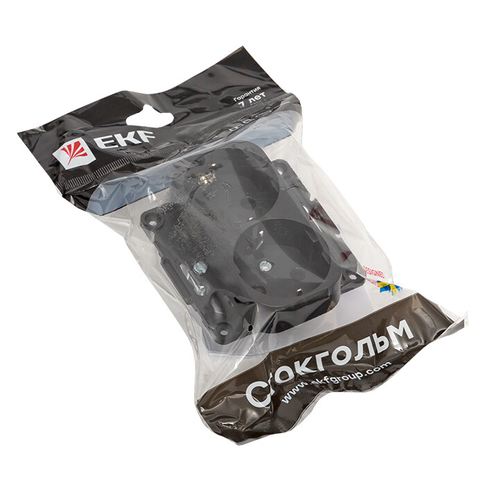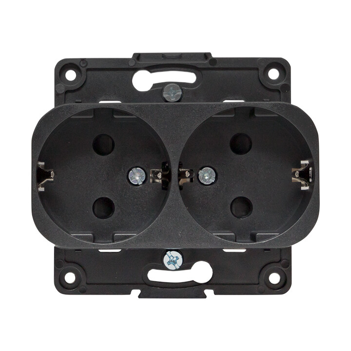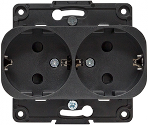 Розетка двухместная EKF EYR16-128-20 "Стокгольм" (16 А, IP20) скрытой установки, с заземлением и защитными шторками, черный