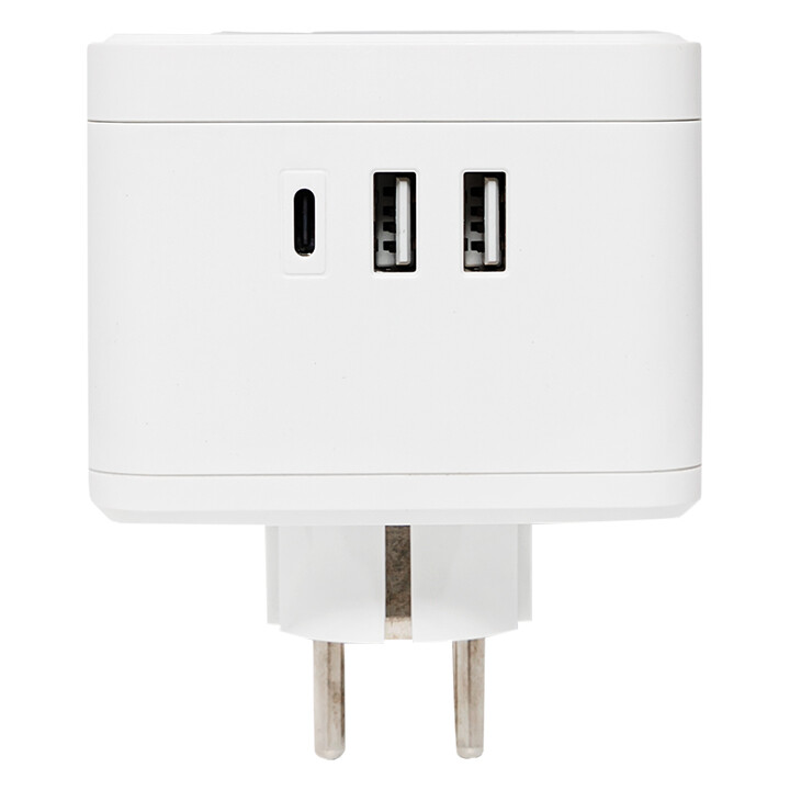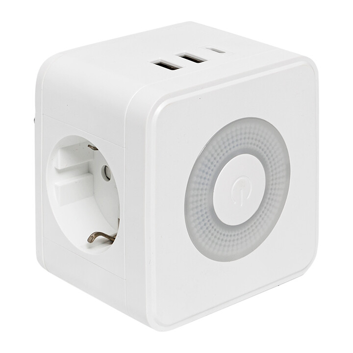 Разветвитель 2-мест 16А заземление 2*USB белый квадрат пластик EKF +ночник