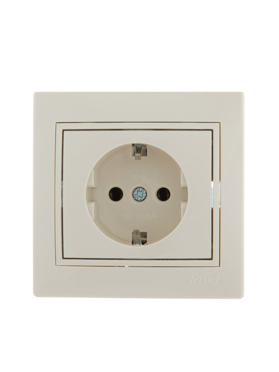 Розетка одноместная Lezard 701-0303-122 Mira (16 А, IP20) скрытой установки, с заземлением, кремовый