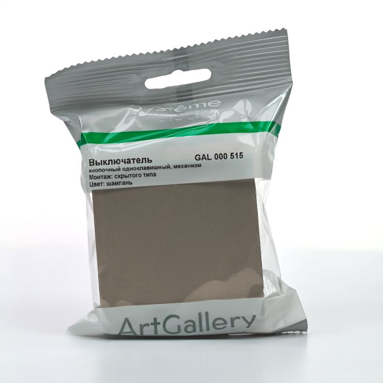 Выключатель одноклавишный кнопочный Systeme Electric GAL000515 ArtGallery (10 А, IP20) скрытой установки, шампань