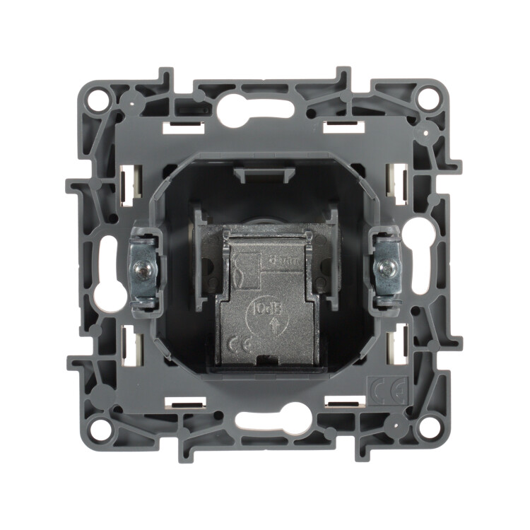 - Присоединение коаксиального кабеля к розетке осуществляется удобным безвинтовым коннектором.