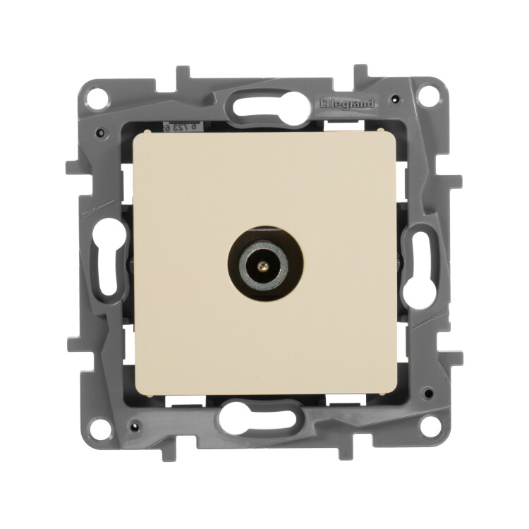 Оконечная ТВ-розетка Legrand Etika, цвет слоновая кость, является составной частью схемы последовательного подключения "шлейф" (от одного к другому) ТВ-приёмников. Устанавливается в конце линии, применяется совместно с проходными ТВ-розетками. Не применяется в качестве одиночной розетки для одного телевизора.