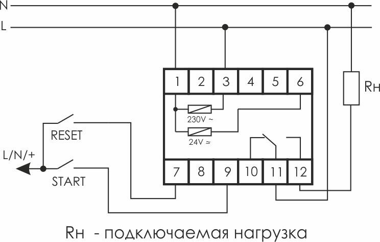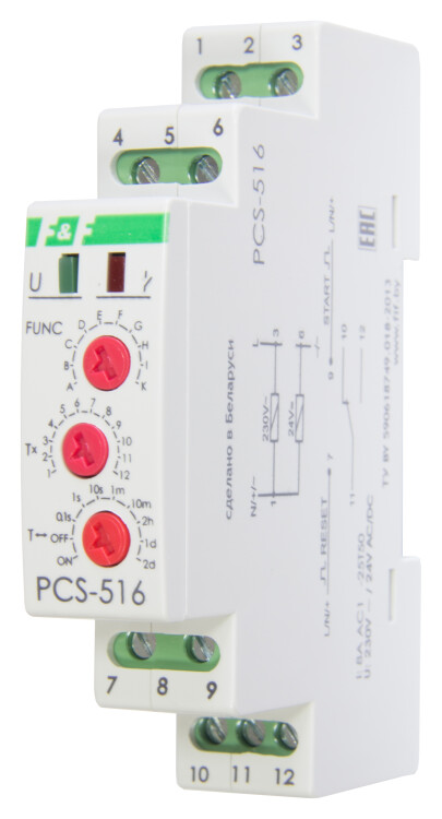 Реле времени программируемое предназначено для включения/выключения потребителя в системах промышленной и бытовой автоматики на заданный отрезок времени, многофункциональное, с входами START и RESET, 1 модуль, монтаж на DIN-рейке 230В AC/24B AC/DC 8А 1NO/NC IP20 Евроавтоматика ФиФ
