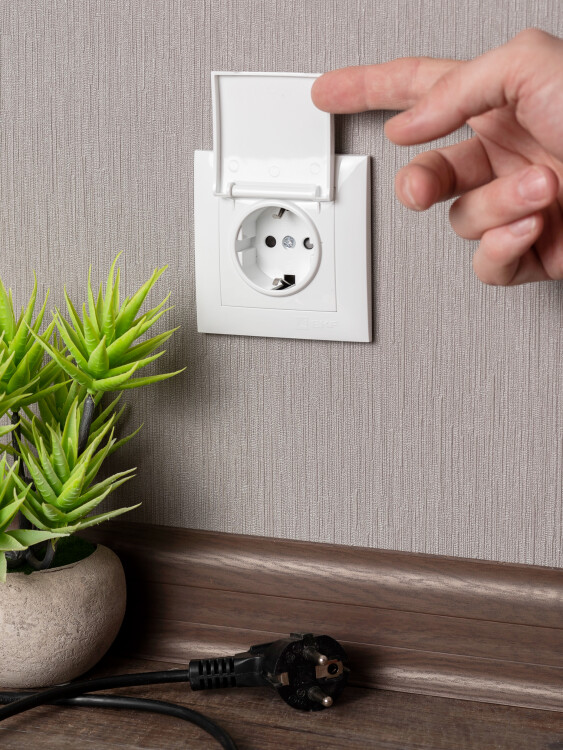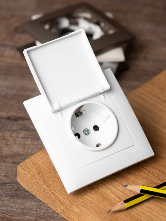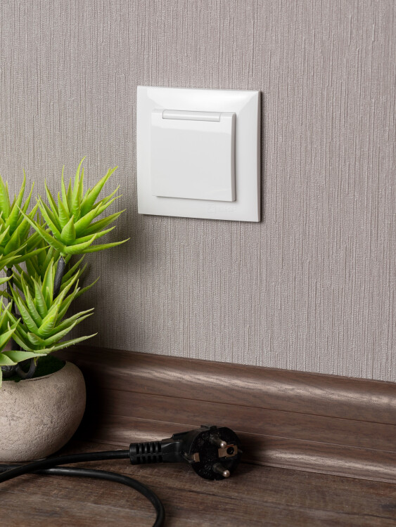 Валенсия белый розетка скрытая 1-мест заземление с крышкой шторки IP44