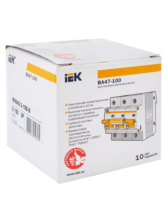 Автоматические выключатели ВА47-100 предназначены для защиты распределительных и групповых цепей, имеющих активную и индуктивную нагрузки.