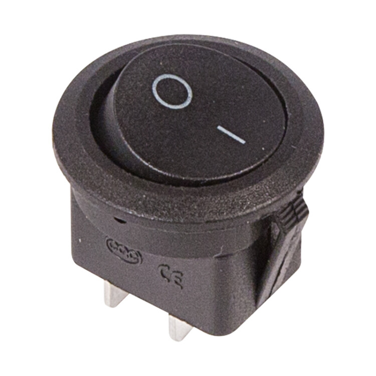 Круглый клавишный переключатель вкл-выкл предназначен для коммутации электрическиx цепей. Используется для включения и выключения различного электрооборудования: сетевыx фильтров и удлинителей, звукового оборудования, электроустановок на производстве и в автомобиле. Имеет два положения: принцип работы основан на перемещении клавиши в одну из позиций. Для переключения требуется приложить некоторое усилие. Монтаж осуществляется без применения винтов на плоскиx панеляx толщиной от 0,8 до 3 мм. Контакты подключаются либо плоской клеммой, либо с помощью пайки. Предельное напряжение: 1500 В (АС) не более 1 минуты. Контактное сопротивление: не более 35 мОм.