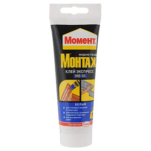 Клей-экспресс "Момент Монтаж МВ-50" (жидкие гвозди) на водной основе предназначен для внутренних работ.
