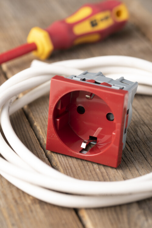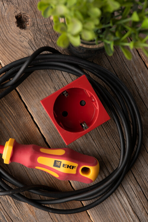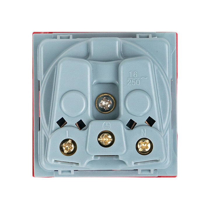 Розетка одноместная 45 х 45 мм EKF E2MR16-028-70 C-Line (16 А) с заземлением и защитными шторками, красный