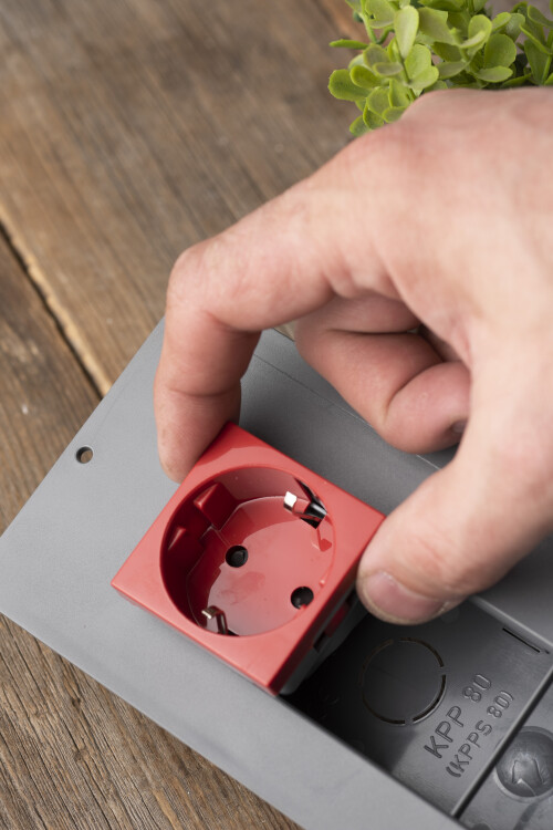 Устанавливаются в парапетные кабельные каналы C-Line, настольные системы и напольные лючки C-Line при помощи специальных суппортов.