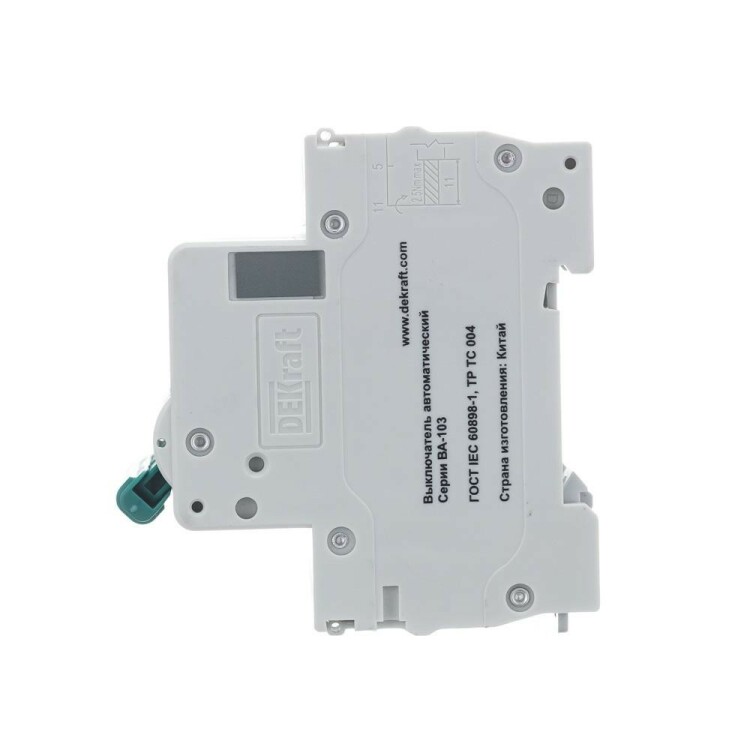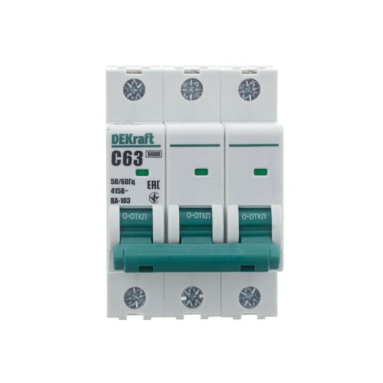Автоматический выключатель серии ВА-103 NEW DEKraft; 3P; номинальный ток 63 А; характеристика C; отключающая способность 6 кА, что позволяет использовать аппараты в качестве вводных. 5 монолитных заклепок повышают прочность корпуса аппарата. Окошко-индикатор всегда показывает состояние контактов вне зависимости от положения рукоятки управления. Боковые каналы охлаждения повышают стабильность работы при высоких температурах окружающей среды. Есть возможность установки дополнительных аксессуаров с левой стороны устройства. Аппарат на 100% совместим с корпусами и оболочками DEKraft, Systeme Electric.