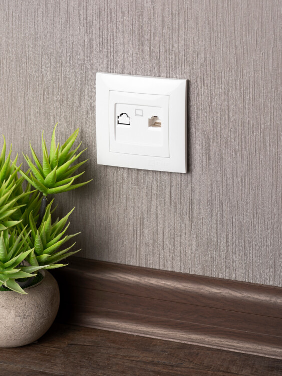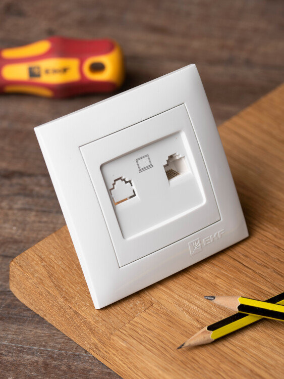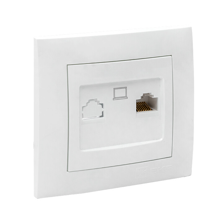 Розетка одноместная RJ45 EKF EWK01-035-10 "Валенсия" (кат. 5Е, IP20) скрытой установки, белый