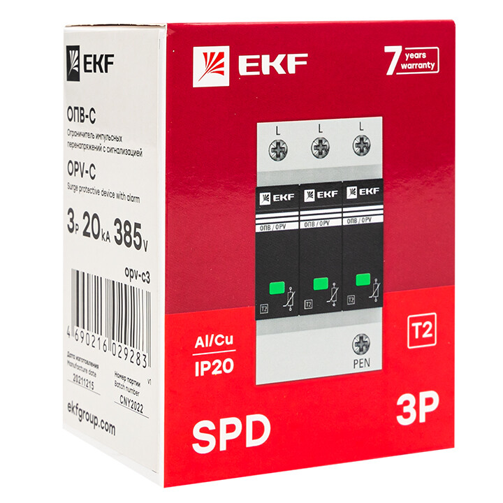 Ограничитель перенапряжения ОПВ-С 3Р 20/20кА 440В EKF