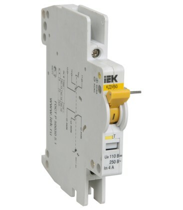 КДУ60 служит для получения информации о состоянии автоматических выключателей ВА47-60 в системах автоматизации технологических процессов или защиты конкретных объектов. КДУ60 выполняет функцию дополнительного контакта и сигнализации положения механизма взвода автоматического выключателя или дифференциального автомата.