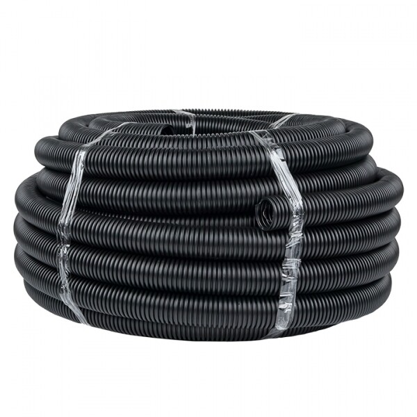 Труба гофра 40мм ПНД легкая 25м EKF черный с протяжкой