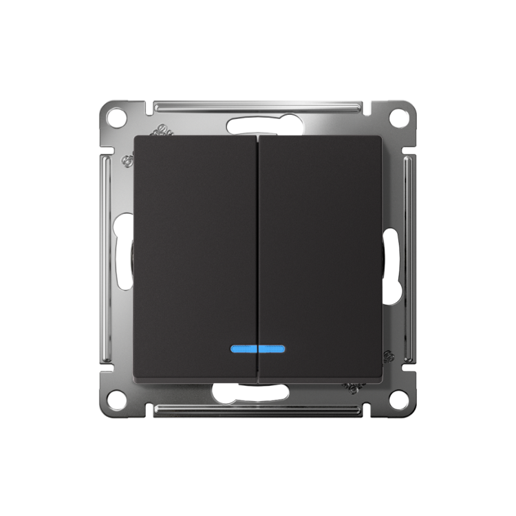 Выключатель двухклавишный Schneider Electric ATN0001053 AtlasDesign (10 АХ) скрытой установки, с подсветкой, карбон
