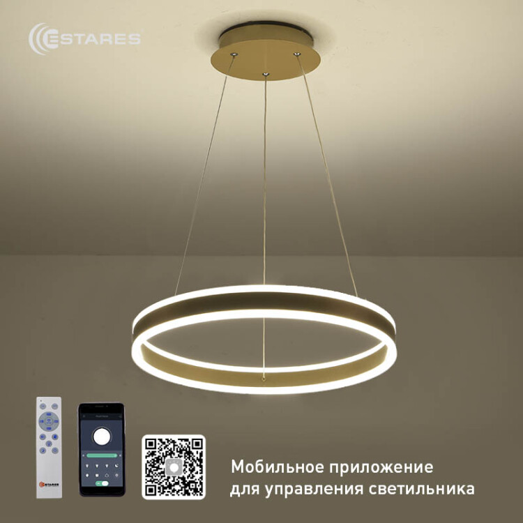 Светильник подвесной (люстра) свд 64Вт 3000-6000K лм золото д/у